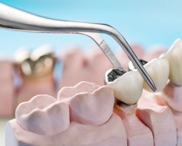 Implantacija – tai moderniausias būdas atkurti prarastą dantį. Į kaulą įsukamas implantas, kuris veikia kaip natūrali šaknis.