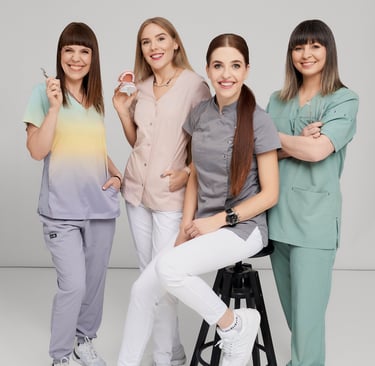 Klinikoje dirba kvalifikuotų specialistų komanda, nuolat tobulinanti savo žinias ir sekanti naujausias odontologijos tendencijas. Naudojame modernią diagnostikos ir gydymo įrangą, kokybiškas medžiagas bei pažangius metodus, kurie leidžia užtikrinti tikslų, saugų ir komfortišką gydymą. Siekiame, kad kiekvienas vizitas būtų kuo sklandesnis ir malonesnis, todėl ypatingą dėmesį skiriame pacientų savijautai bei pasitikėjimui.